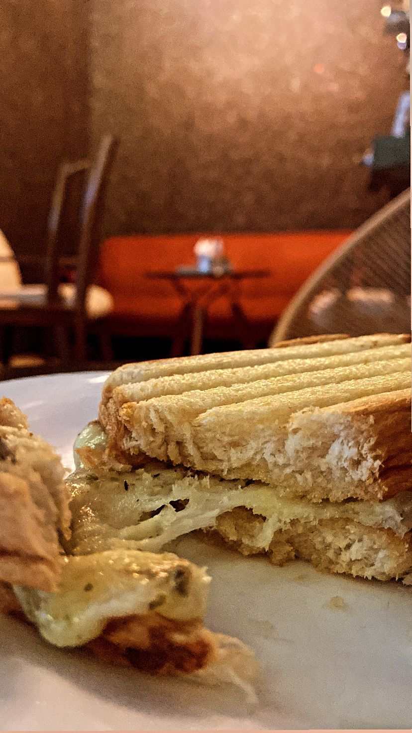 sanduba delícia com queijo muçarela, presunto, molho bechamel e ovo